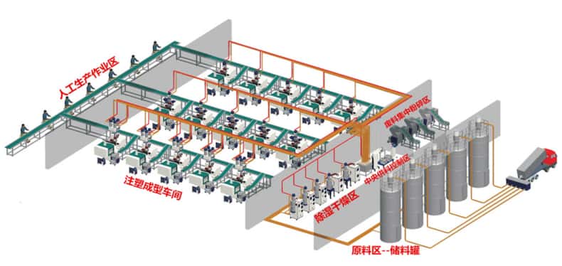 做注塑的老板和师傅都知道,传统供料有多麻烦 ——10 台机得 8 个人轮班搬料,夏天车间 38℃,师傅扛着 25kg 料包来回跑,累得没人愿意干;原料堆在地上,风吹着有粉尘,下雨天还受潮,做出来的产品全是气泡;有时候忙不过来,料斗空了没及时补,机器停半小时,损失好几千。 集中供料系统就是来解决这些麻烦的,说直白点,就是 “管子自动送料、机器自己管料”。它的作用首先是省人工,以前 10 台机 8 个人,现在 2 个人坐在控制室看屏幕就行 —— 原料从储料仓通过管子直接送到每台机的料斗,不用人搬,师傅再也不用扛料桶了。东莞有家做电子外壳的厂,装了之后每月少花 6 个人的工资,一年省了近 40 万。…