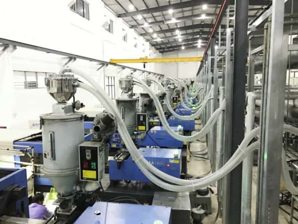 做注塑的师傅和老板,可能常听人说 “负压供料”,其实它的原理特简单 —— 就像家里用吸管喝可乐,吸管里抽走空气形成 “负压”,可乐就被吸进嘴里,负压式注塑集中供料系统,就是用这个逻辑给注塑机送原料。 它核心就是 “抽真空送料”:车间里放几个不锈钢储料仓存原料,配一台真空泵,再拉几条 PU 管道连到每台注塑机的料斗。真空泵一启动,管道里的空气被抽走,形成负压后,储料仓里的颗粒料(比如 ABS、PC 料)就会被 “吸” 进管道,顺着管子自动跑到对应的注塑机料斗里,全程不用人搬料桶,管子也是密闭的,不会撒料、进粉尘。 这种系统看着简单,却特别适合三类注塑车间:第一类是 “多机台 + 多原料” 的车间…